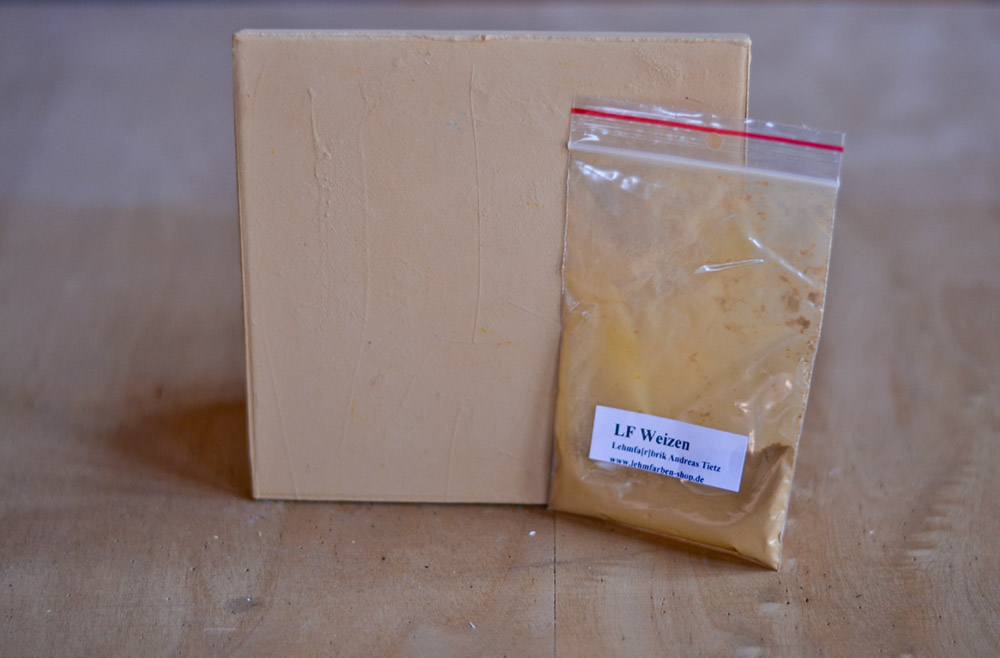 Sie erhalten unseren Lehmstreichputz "Weizen" in Pulverform.